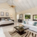 The upper level features the master bedroom and an additional bedroom suite, all featuring exceptional finishes, hand-finished ceiling moldings and private terraces with views of the entire West Coast of Barbados. The en suite bathrooms have freestanding bathtubs, separate walk-in showers, hand-laid mosaic tiling and elegant vanities and cabinetry.