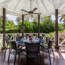 The Great Room is simply breathtaking; with music hall proportions and soaring ceilings, it is the centerpiece of the villa's interior living space. The room features floor-to-ceiling pocket doors that slide away to reveal the spectacular views of the property's stunning double-sided free-form swimming pool with cascading waterfall infinity edges and a swim-up bar area. The pool's adjacent terraces offer luxurious space for sunbathing; as the sun reaches its pinnacle heat, giant sun screens automatically roll down, retaining the enchanting views while creating shady spaces for that perfect lazy afternoon. The dining gazebos and out door areas are ideal for breezy al fresco lunches or evening cocktails under a starlit Caribbean sky.