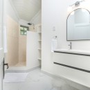 The elegant master suite offers a true sanctuary, featuring a spa-like en-suite bathroom, spacious walk-in wardrobes, and a private outdoor shower. Two guest bedrooms share a stylish bathroom, while a fourth bedroom with its own bath provides added privacy for visitors or extended family.