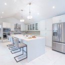 At the center of the home lies a sleek, contemporary kitchen, appointed with granite countertops and high-quality finishes. Additional conveniences include a garage and a fully equipped laundry room.