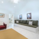 The interiors are bright and inviting, with a spacious living room crowned by vaulted ceilings that create an open, airy ambiance. A formal dining room and a cozy TV lounge provide versatile spaces for both entertaining and relaxation, while two covered terraces invite alfresco dining and leisurely afternoons in the shade.