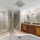 Bedroom 1: Master bedroom with a king-size bed, ceiling fan,  A/C, TV, WiFi, and en-suite bathroom with shower, double vanity and WC. 2 guests maximum