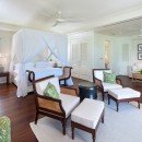 Bedroom 10: Ground floor bedroom with a king-size bed (can be made up as two single beds), one single bed,  A/C, ceiling fan, safe and en-suite bathroom with bathtub/shower, vanity and wc. 3 guests maximum