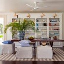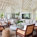Inside, there is a piano lounge, a home cinema, and many other casual spots to recline and savor the scenery. Taking design cues from the island, the various buildings lean towards pale palettes, natural materials, and classic furnishings to create a wonderfully appealing setting at all times.