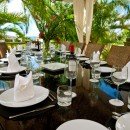 A few steps up to the verandah takes you to an al fresco dining spot and outdoor lounge. Just inside is the living room with grand piano, oversized sofas, high ceilings, and stunning décor. Nearby, an equally large media room features a television and entertainment system along with a computer workstation. Another large dining area at one end of the villa is adjacent to the modern, gourmet kitchen. A chef is available if desired or you can enjoy full use of this impressive space for making meals and beverages.