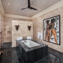Divided between the main part of the villa and elegant guest house, the bedrooms are all luxuriously appointed with private baths, views or terrace/patio access, entertainment systems, and more. The main house features seven suites along with a main level master bedroom with separate living room, and two additional suites are in the guest house.