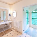Bedroom 7 (Sunset North): Bedroom with two single beds (can be made up as a king-size bed), A/C, ceiling fan, walk-in closet, access to pool terrace with sea view and en-suite bathroom with shower, double vanity and WC. 2 guests maximum.