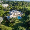 Step into the realm of luxury at this contemporary 5-bedroom villa, where each room boasts a king bed. Nestled within an esteemed gated community on Barbados's West Coast, this villa presents two expansive primary bedrooms on the upper level, each accompanied by en-suite bathrooms and access to expansive upper terraces, providing captivating vistas of the Caribbean Sea and verdant gardens.