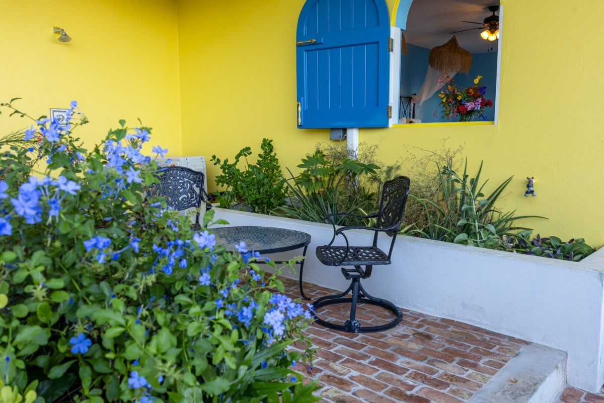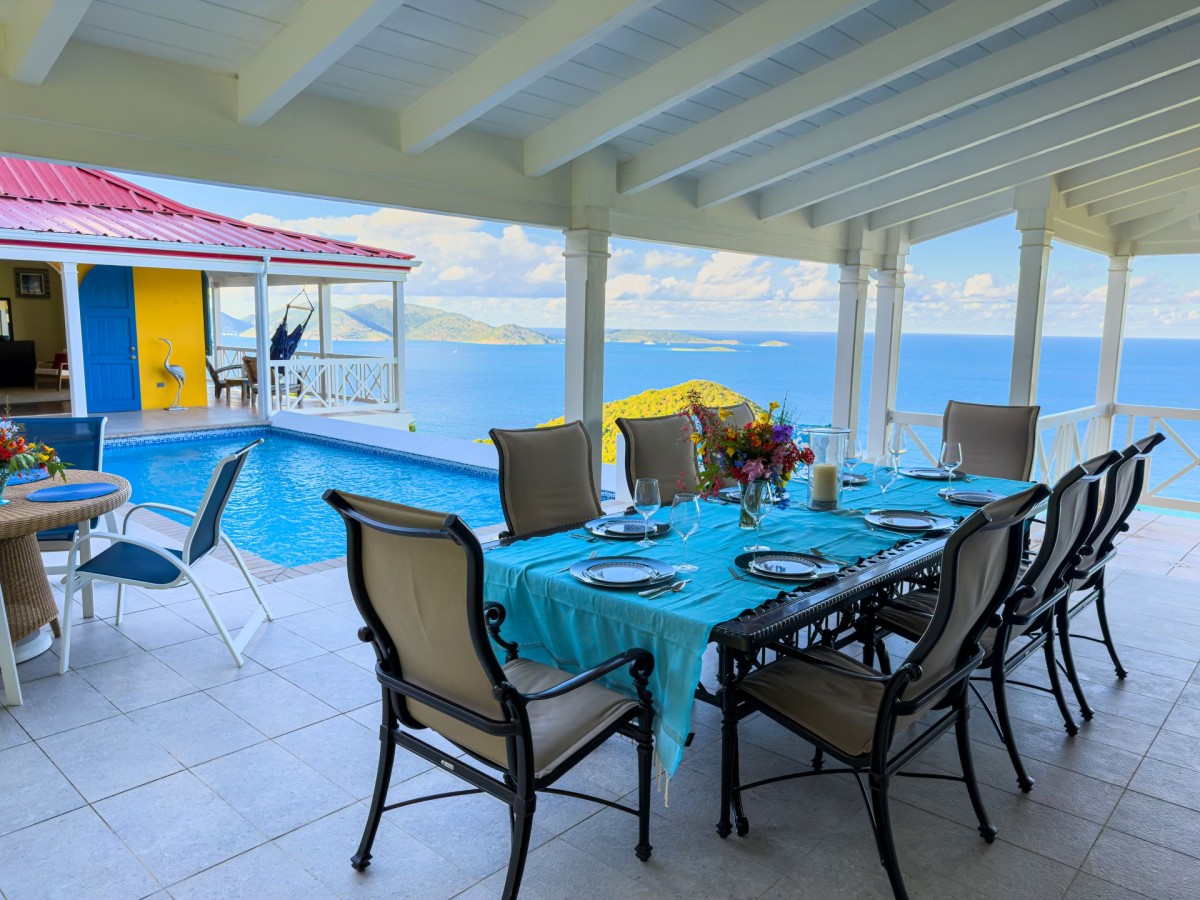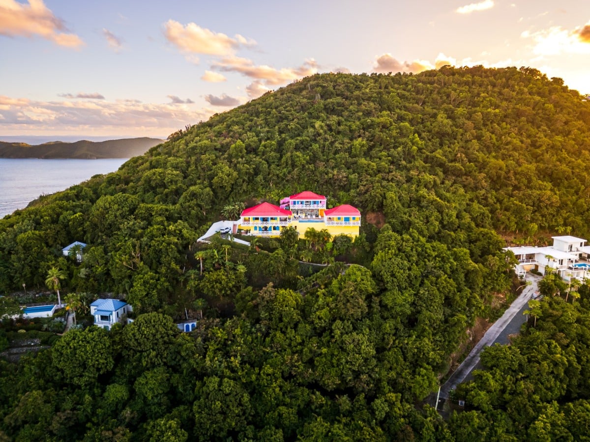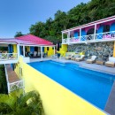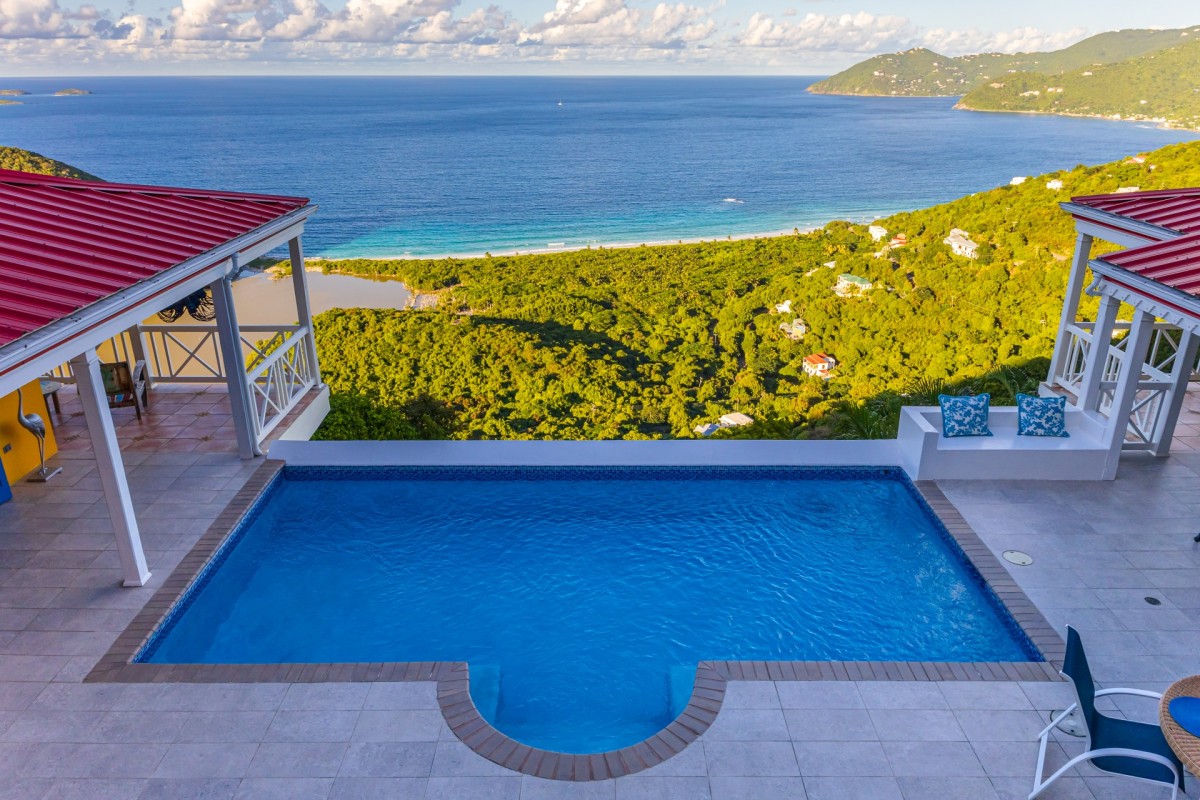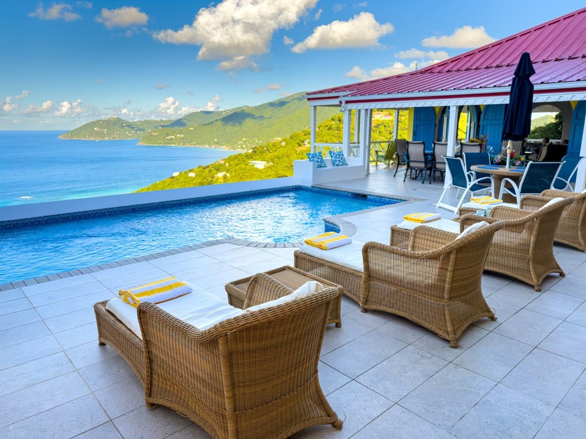 The name of this charming, three-bedroom villa is perfect, and the Villa Sunny Side Up is just as bright and cheerful as it sounds. A hillside retreat, it uses a bold and inspiring palette of sunny yellow, bright red, rich blue, and even dashes of pink to create one of the most inspiring spaces imaginable. Overlooking Long Bay Beach, in the Belmont area of Tortola, it also provides glimpses of the rolling landscape and verdant terrain that leads down to the sea.