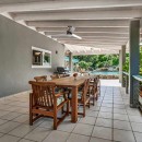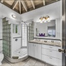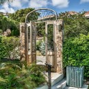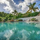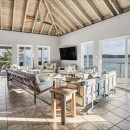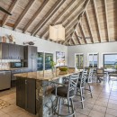 Upon arrival at Coconut Grove, guests are greeted by a splendid purpleheart wood and iron gate. A natural stone path, adorned with lush tropical gardens, leads the way to the villa. Spanning 5,400 square feet of both indoor and outdoor living spaces, the property is versatile enough to host couples, small groups, reunions, weddings, and receptions. The Great Room boasts soaring vaulted ceilings and breathtaking vistas, complete with a well-appointed chef's kitchen featuring a central island and an indoor dining area.