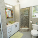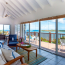 Freshly renovated in the spring of 2021, Sea View seamlessly combines comfort with its priceless vistas of Mosquito Island and Prickley Pear Island. The villa's main living space is bathed in natural light, featuring an open-concept kitchen, as well as comfortable seating and dining areas. Ascend to the upper level to discover a king-sized bedroom with its own en-suite bathroom and a private balcony. On the main level, a second bedroom awaits, offering two extra-long twin beds and an adjoining bathroom.