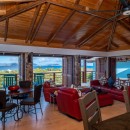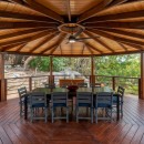 Step into the exquisite Great Room at Eden Waters, where the boundaries between indoor and outdoor living blur, creating an open and airy ambiance. Revel in the glorious panoramic views from every angle while enjoying the comfort of the well-appointed seating areas. The kitchen is a chef's dream, equipped with top-of-the-line appliances, including a Thermador range stove featuring eight gas burners, a griddle, and multiple electric ovens. Whether you prefer dining indoors or alfresco under the covered deck, this space offers both comfort and style.