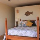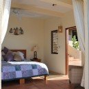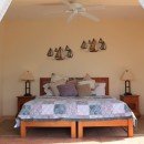 Bedroom 3 : Upper level bedroom located above bedroom 2 (exterior access) with king-size bed, AC, WiFi, ocean views and en-suite bathroom with shower, vanity and WC. 2 guests maximum.