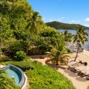 This villa provides five bedrooms, all located for optimal privacy and luxury. They are placed at different elevations and oriented towards the best views. From the comfort of your suite, you will be able to gaze out to sea and enjoy uninterrupted views of the waters, distant islands, and the beach directly in front of the villa.