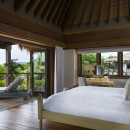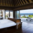 On the ground floor of the main villa is a large lounge, fully-equipped kitchen, two breakfast bars and dining table, all looking out onto a deck which leads directly onto the infinity edge pool and Jacuzzi. With a full-size fridge, separate temperature-controlled wine fridge and additional drinks fridge in the kitchen, you only have to worry about keeping yourself cool. Luckily if the sea breezes aren’t enough, the villa is fully air-conditioned and there’s always the pool of course.
