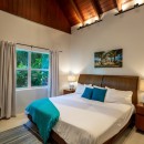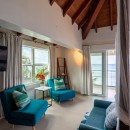 The four bedrooms are divided between upper and lower levels for privacy and to ensure great views. There are two upper floor suites, both with terraces and king beds. The ground floor suites are also king suites, and one opens to the terrace. All of the bedrooms feature large and opulently appointed ensuite baths, and each is designed in a beautiful, unique way.