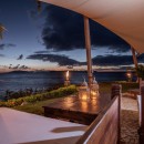Wrapping around a private point, it offers an unprecedented panoramic view. Visitors can take just a quick stroll through the lush and private grounds to reach their sandy cove which is sheltered by a natural stonebreaker. They might also walk along the lawn and to their private sun deck before taking a casual dip in the lovely pool. Surrounded by the stone terrace, and framed with sun beds and a covered "al fresco" dining area, it will quickly become a preferred gathering place.