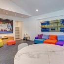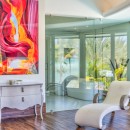 There are formal lounges and sitting areas further inside of the house, and an impressive modern art collection is used to add bursts of color to the otherwise low-key décor. Because there is a full household staff with a chef, housekeeping team and grounds crew, guests don’t have to lift a finger and can feel free to enjoy the amazing amenities. In addition to the multiple lounges, there is also a piano bar area and media space.