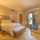 Perched to offer spectacular views, the villa's second-floor bedrooms provide sweeping panoramas of the Caribbean Ocean and the verdant Punta Espada golf course. This retreat is perfect for family vacations or gatherings with friends, featuring five exquisitely designed private bedrooms.