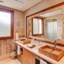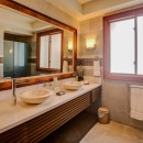 The villa features a master bedroom with a king-size bed, an ensuite bathroom, a bathtub, and a TV for your ultimate comfort. Two additional bedrooms offer two queen-size beds each, both with ensuite bathrooms and televisions. The fourth bedroom boasts two queen-size beds and an ensuite bathroom with a television as well.