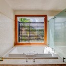 Bedroom 1: Master bedroom with a king-size bed, ceiling fan, A/C, TV, WiFi, walk-in closet, private balcony, outdoor shower, and en-suite bathroom with bathtub, shower, double vanity and WC. 2 guests maximum.