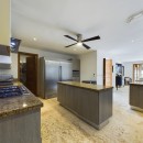 Inside the villa, the layout is designed for comfort and entertainment. The ground floor features a well-equipped gym, a cozy living room complete with air conditioning and cable TV, and a full kitchen with a beautiful island perfect for meal preparation. There are three bedrooms on this level: a luxurious Master suite with a king-size bed and ensuite bath, a Queen suite with two queen-size beds, and a Bunk bedroom with two bunk beds. Upstairs, you'll find a theater or game room along with three additional bedrooms, each with ensuite bathrooms, air conditioning, and cable TV.