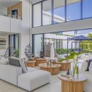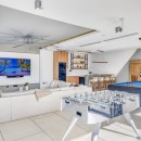 Yet, the stunningly modern villa with its immense and furnished pool terrace offering lounges, sun beds and open-air living spaces, is hard to resist. Upper level terraces are also part of the experience, and the shared interior spaces are truly inspired. Living rooms, lounges, dining areas and an enormous games room make it a wonderful spot for groups to gather.
