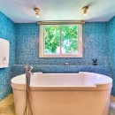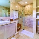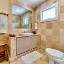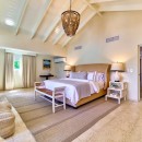 Among the accommodations are two luxurious master suites. The first, located on the upper floor, boasts breathtaking views from its private balconies, while the second, situated on the ground floor, offers effortless accessibility. The six additional guest rooms, thoughtfully distributed across both levels, each feature an en-suite bathroom and walk-in closet, ensuring ultimate comfort and convenience for all guests.