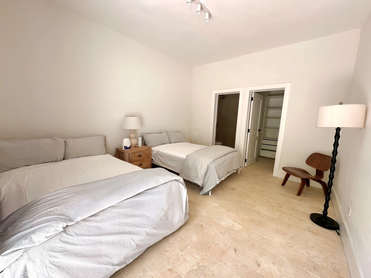 Bedroom 5: Bedroom with two queen-size beds, A/C, WiFi, and en-suite bathroom with shower, vanity and WC. 2 guests maximum