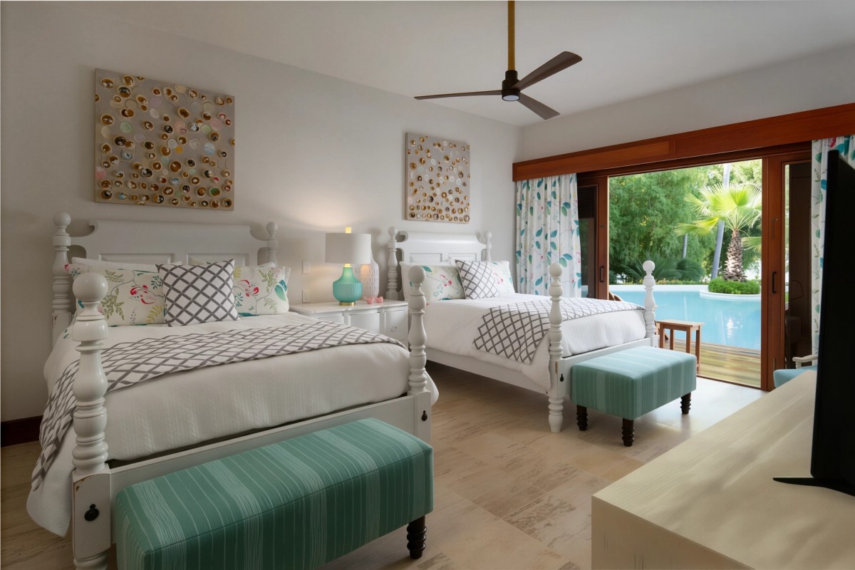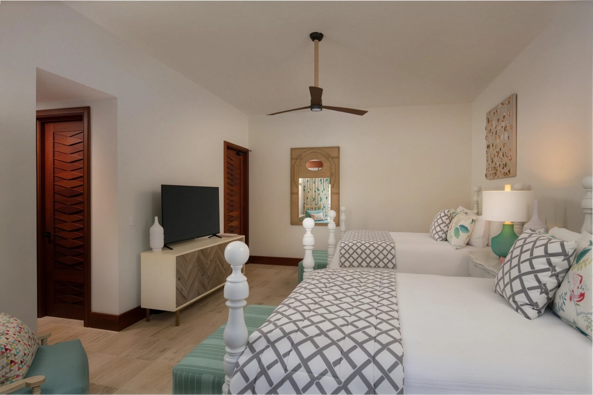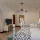 Bedroom 7: Bedroom with two double beds, ceiling fan, A/C, WiFi, TV, and en-suite bathroom with shower, vanity and WC. 2 guests maximum.