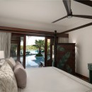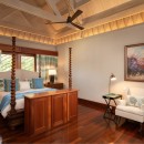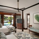 Step outside to find a lush tropical garden surrounding a stunning oceanfront pool. Multiple lounge areas, shaded gazebos, and carefully curated relaxation spots encourage guests to fully experience the beauty of the natural surroundings. The private dock grants direct access to pristine waters, while the secluded beach provides a rare level of quietude—even compared to other world-class destinations.