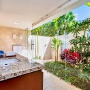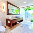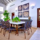 The villa’s indoor and outdoor living areas provide various options for relaxation. The indoor living room, complete with central air conditioning and comfortable seating, offers a quiet space for reading or unwinding. The outdoor living area, with plush sofas and dining tables, provides an ideal setting for enjoying meals or socializing while surrounded by the beauty of nature. Whether you prefer the cool comfort of the indoors or the open-air luxury of the outdoors, Villa del Mar is designed to offer an unforgettable experience of Caribbean elegance. From the stunning views to the impeccable service, every detail at Villa del Mar is crafted for an unparalleled stay.