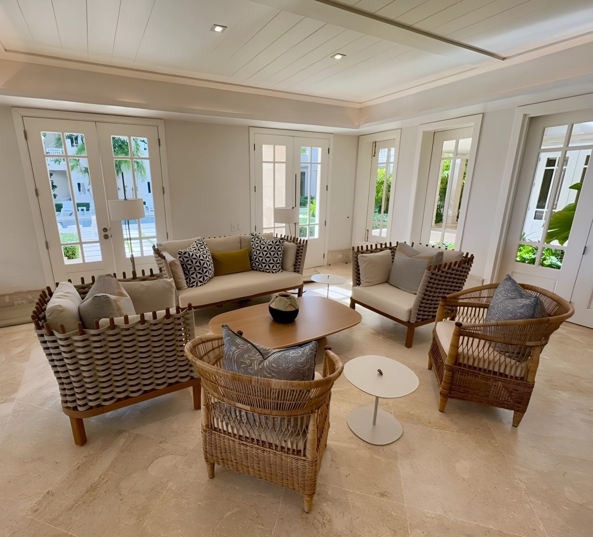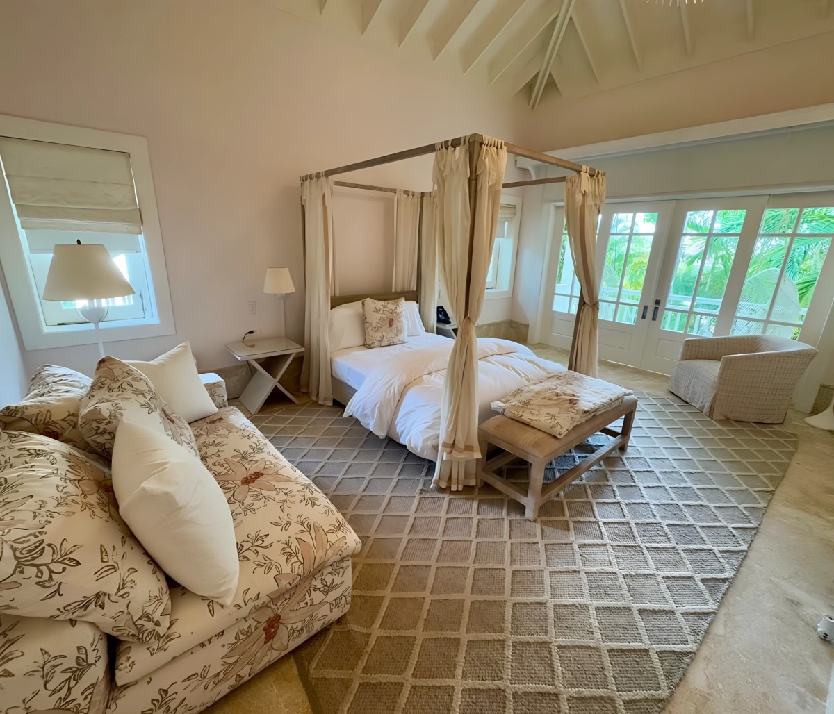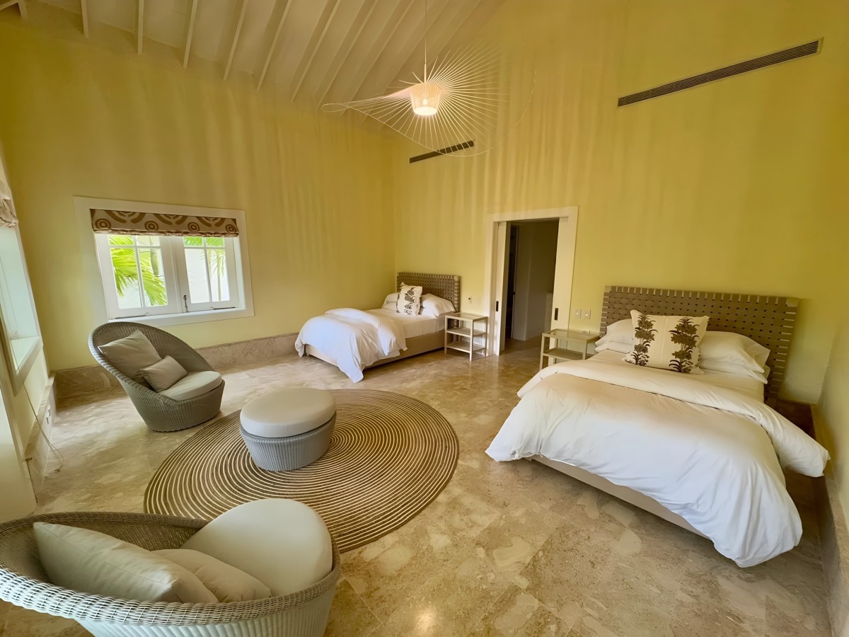 The property features seven spacious bedrooms, each with its own en-suite bathroom and closet to ensure complete privacy. Four luxurious master suites include king-size beds, while two guest rooms come with two full-size beds each. A family-friendly room with four twin beds adds even more flexibility for larger groups. Bright, inviting, and tastefully furnished, every bedroom creates an atmosphere of calm and comfort.