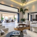 Indoor and outdoor areas flow together seamlessly through a fluid, harmonious layout. The entertainment spaces extend outward, where a spacious outdoor living room opens onto a spectacular infinity pool and an elegant gazebo surrounded by lush tropical greenery. Here, the line between nature and design disappears, creating the perfect atmosphere for pure relaxation or hosting guests with impeccable style.
