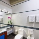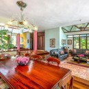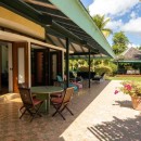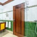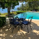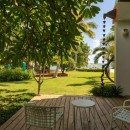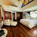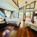 The villa is designed for comfort and convenience, with five well-appointed bedrooms and five and a half bathrooms. On the ground floor, three of the bedrooms are furnished with two queen-size beds each, offering ample space for guests. Each of these bedrooms also has its own private bathroom and direct access to the lush garden, making them an ideal retreat. Upstairs, the remaining two bedrooms provide stunning ocean views. The master bedroom is particularly luxurious, featuring a king-size bed and expansive space, while the guest bedroom also offers a king-size bed, ensuring a comfortable and peaceful stay for all guests.