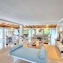 For dining, Villa Sharon offers a grand space with a large, glass dining table that comfortably seats up to fourteen guests. Whether you're enjoying a gourmet meal prepared by a private chef or sharing a relaxed breakfast with loved ones, the dining area offers a memorable backdrop. Guests can savor meals while taking in the stunning views, creating cherished moments together in this luxurious setting.