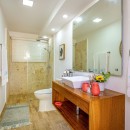 Bedroom 5: Bedroom with two double beds, A/C, ceiling fan, WiFi, and en suite bathroom with a shower, vanity, WC, 2 guests maximum