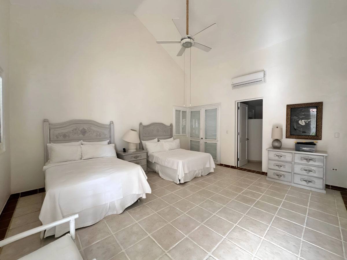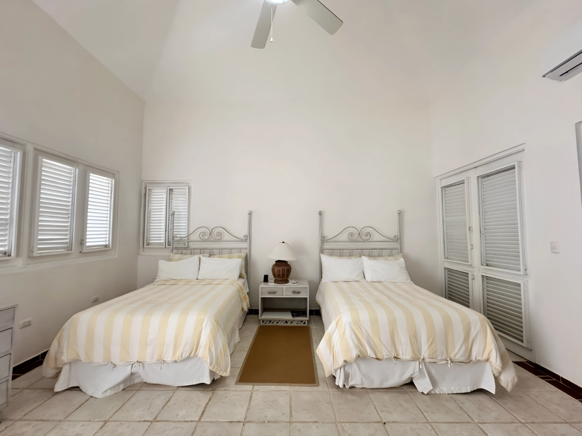 Bedroom 4: Bedroom with two double beds, A/C, ceiling fan, WiFi, and en-suite bathroom with shower, vanity, and WC. 2 guests maximum.