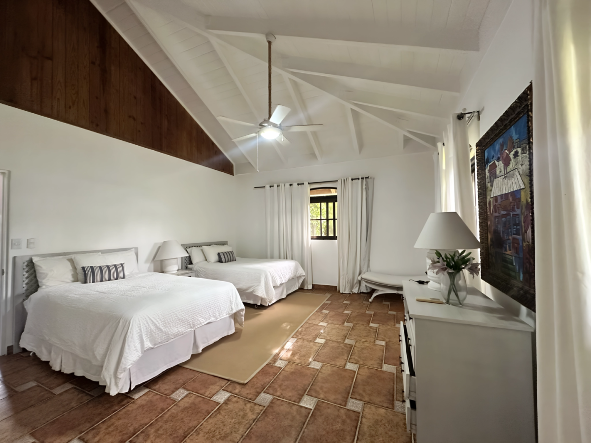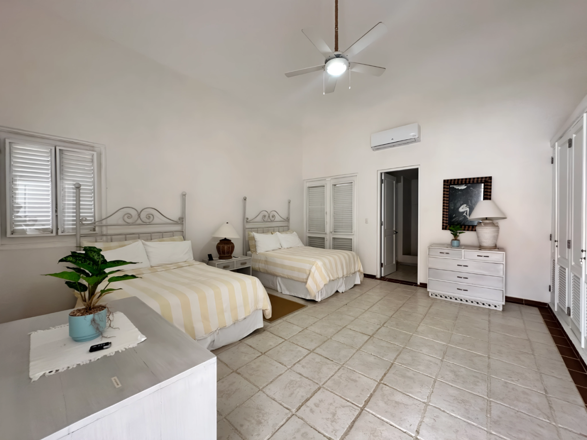 Bedroom 5: Bedroom with two double beds, A/C, ceiling fan, WiFi, and en-suite bathroom with shower, vanity, and WC. 2 guests maximum.