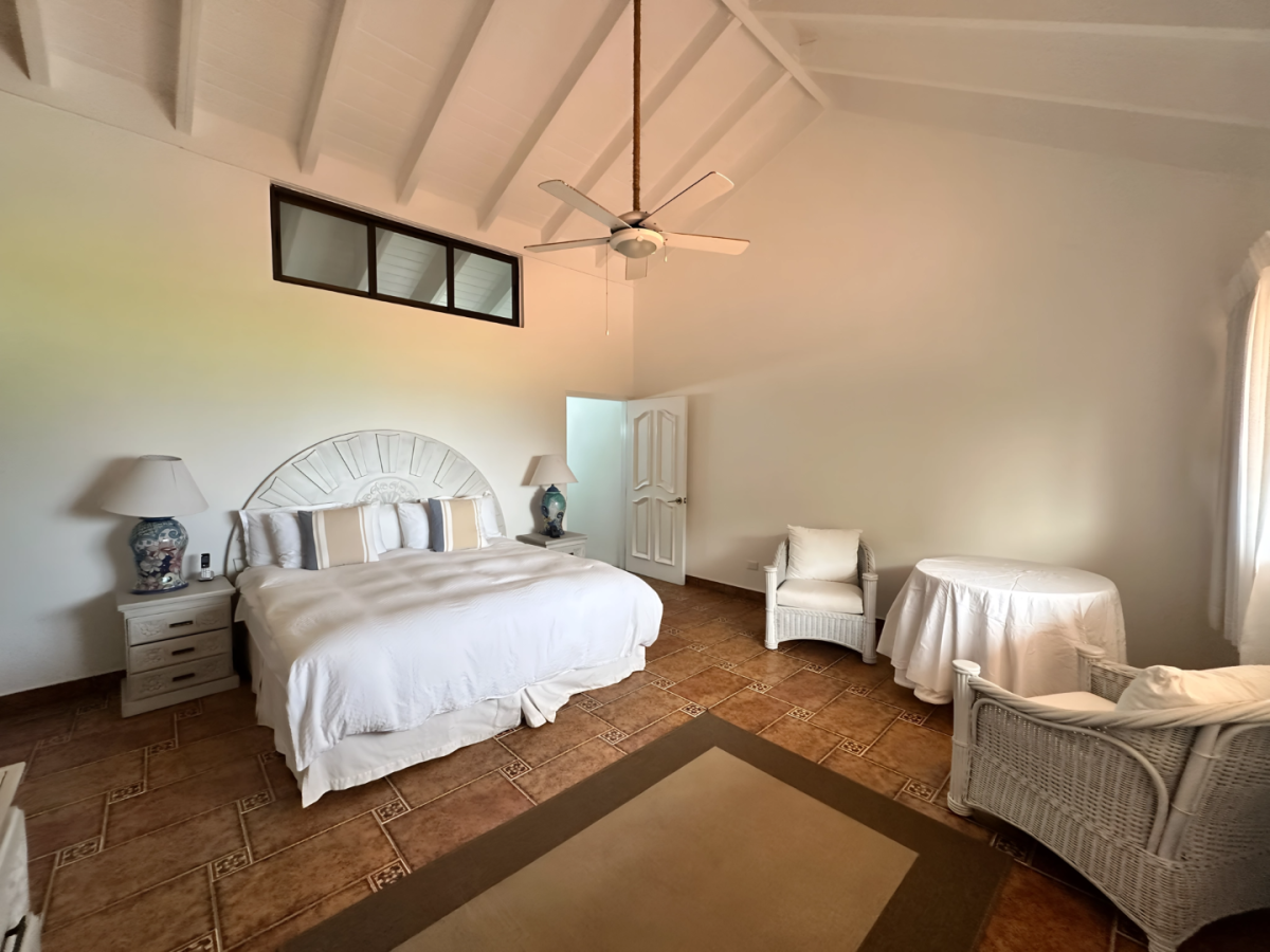 Bedroom 1: Bedroom with a king-size bed, A/C, ceiling fan, WiFi, and en-suite bathroom with shower, vanity, and WC. 2 guests maximum.