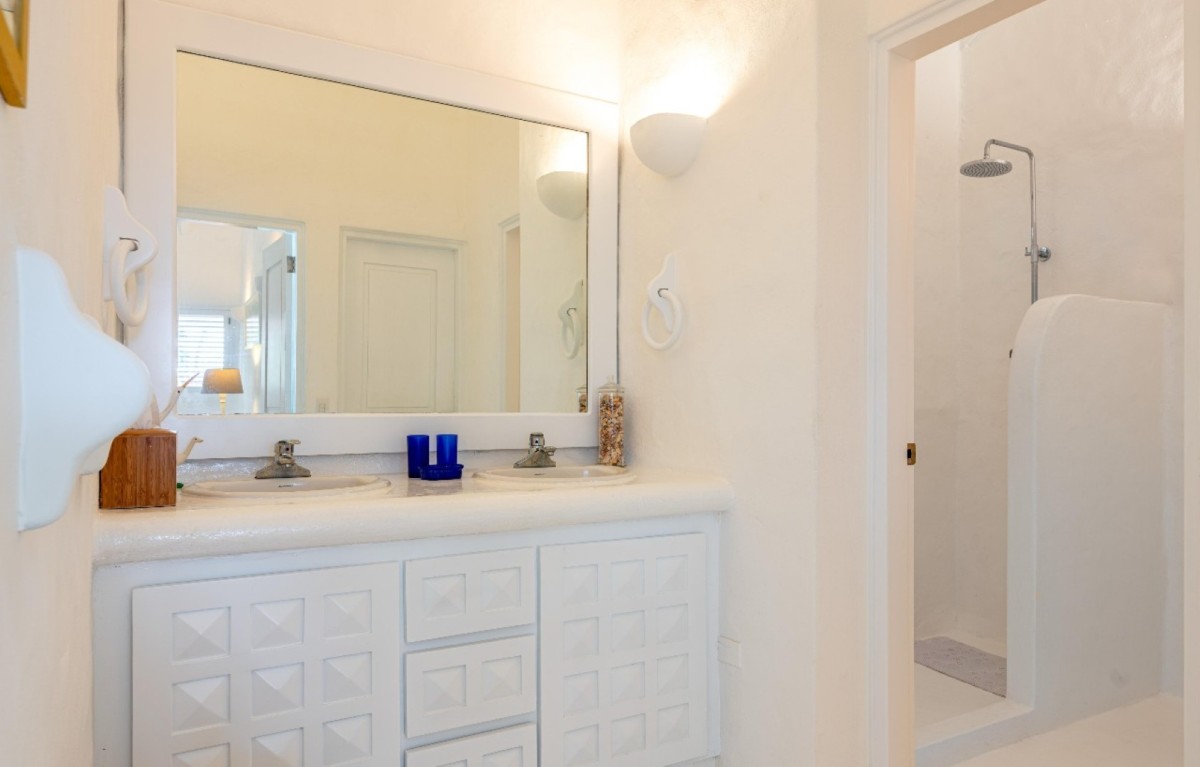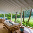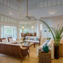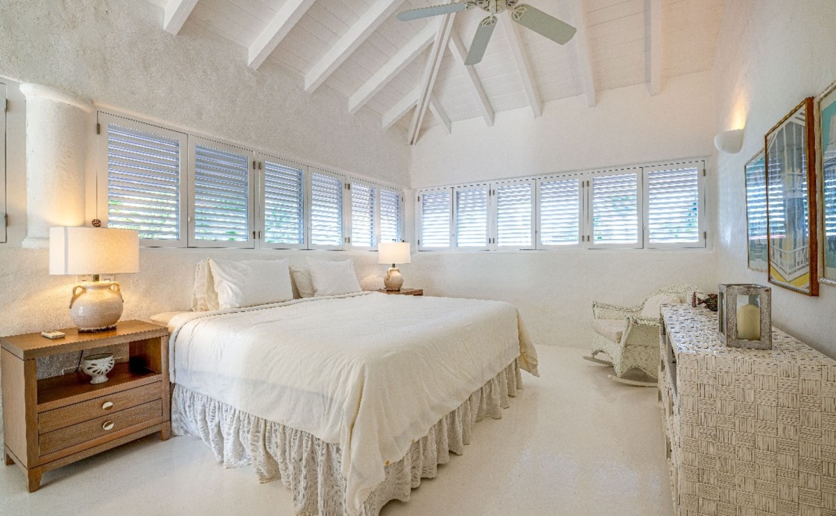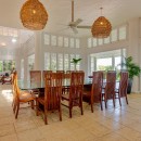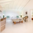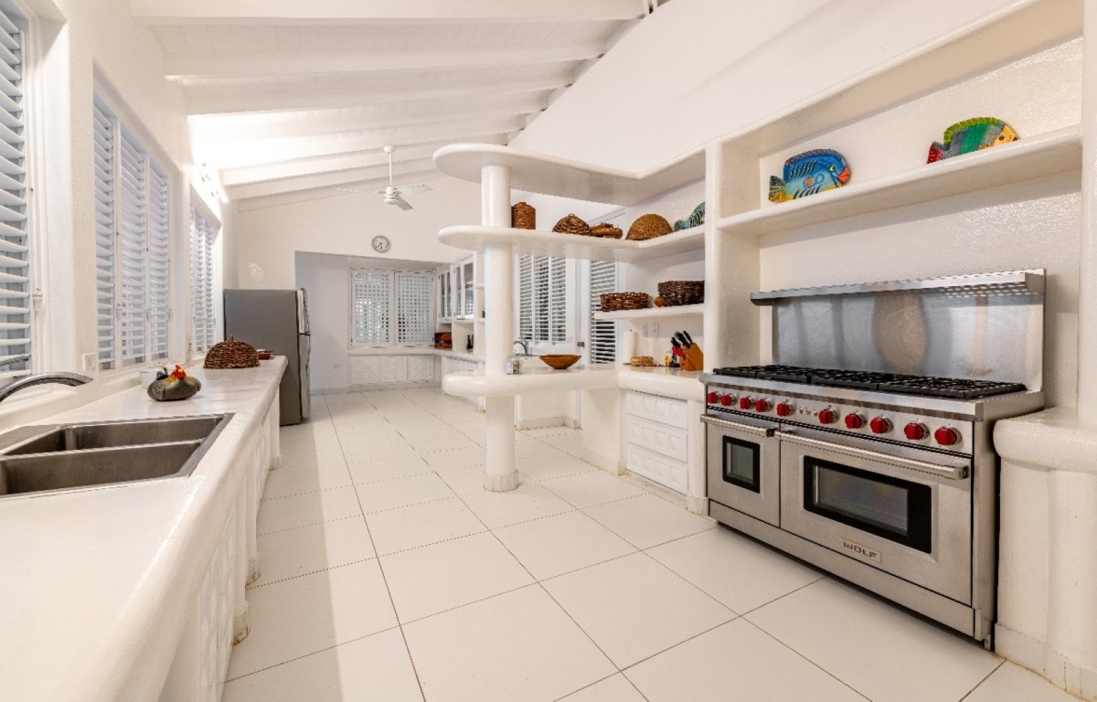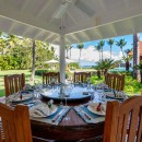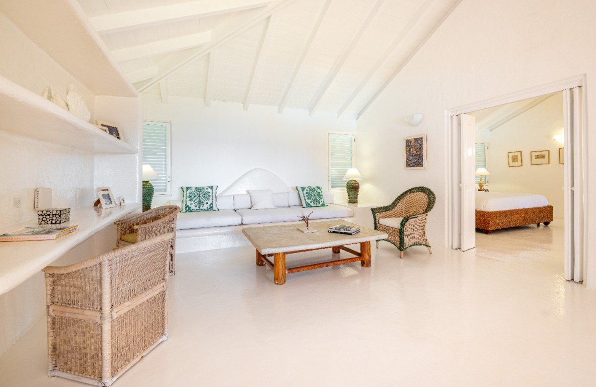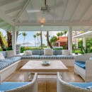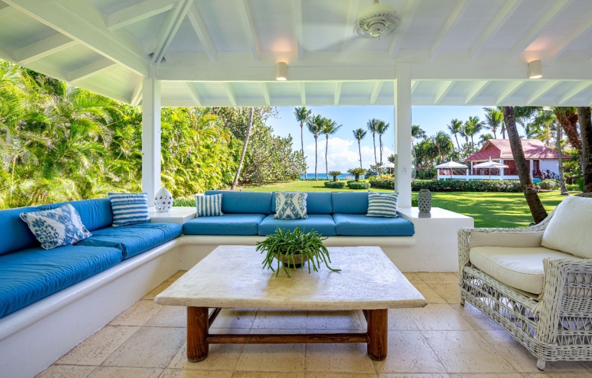 Villa Nita’s expansive outdoor areas provide ample space for relaxation and entertainment. The large yard is perfect for outdoor activities, while the oceanfront terrace, with its classic white furniture, creates a warm and inviting atmosphere for dining or enjoying a sunset. The enclosed gazebo offers a cool retreat from the sun, where you can relax, watch TV, or take a peaceful nap.