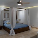 Bedroom 1: Master bedroom with a king-size bed, lounge area, ceiling fan, A/C, WiFi, TV, access to the terrace, and en-suite bathroom with Jacuzzi, shower, double vanity, and WC. 2 guests maximum.