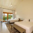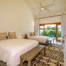 Bedroom 3: Bedroom with two queen-size beds, A/C, TV, WiFi, access to the terrace, and en-suite bathroom with indoor/outdoor shower, vanity, and WC. 2 guests maximum.