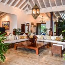 Designed for ultimate comfort and relaxation, the villa features six generously sized, air-conditioned bedrooms, each offering a private sanctuary with stunning ocean views. Vaulted ceilings and shuttered doors allow the Caribbean breeze to flow freely, while indoor and outdoor showers add an indulgent touch to your bathing experience. Whether you prefer a king-size bed, two queen beds, or twin beds, every room is designed to provide a peaceful retreat, accompanied by the soothing sounds of the sea.