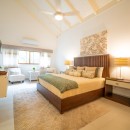 Villa Stone boasts four beautifully appointed bedrooms, each featuring large windows that frame stunning views of the lush, tropical surroundings. Designed with premium materials and sleek finishes, every room offers a refined yet welcoming atmosphere. Complementing the bedrooms are four modern bathrooms, each with elegant marble details and high-end fixtures that ensure a spa-like experience.
