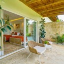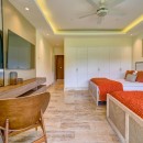 Bedroom 5: Bedroom with two double beds, ceiling fan, A/C, TV, WiFi, terrace, and en-suite bathroom with shower, vanity and WC. 2 guests maximum