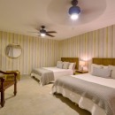 Bedroom 6: Bedroom with two double beds, ceiling fan, A/C, TV, WiFi, terrace, and en-suite bathroom with shower, vanity and WC. 2 guests maximum