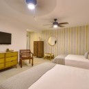 Bedroom 3: Bedroom with two double beds, ceiling fan, A/C, TV, WiFi, terrace, and en-suite bathroom with shower, vanity and WC. 2 guests maximum