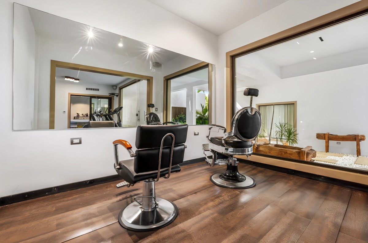 For leisure and entertainment, Villa Zuleica goes beyond the expected. Guests can enjoy a variety of activities without leaving the property—from morning workouts in the fully equipped gym to evenings spent watching films in the private cinema. The wellness amenities, including a sauna, massage area, and hair salon, ensure that every aspect of relaxation and self-care is thoughtfully addressed.