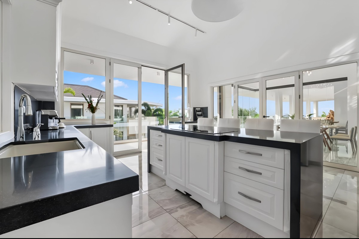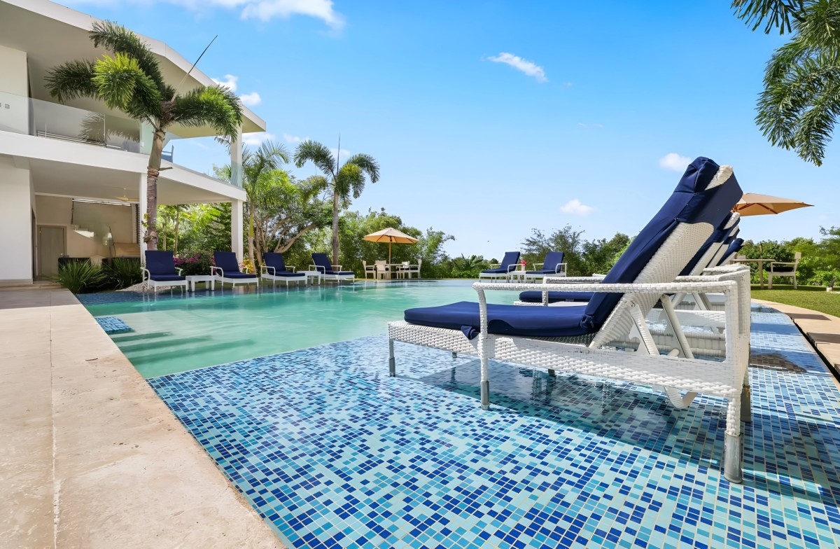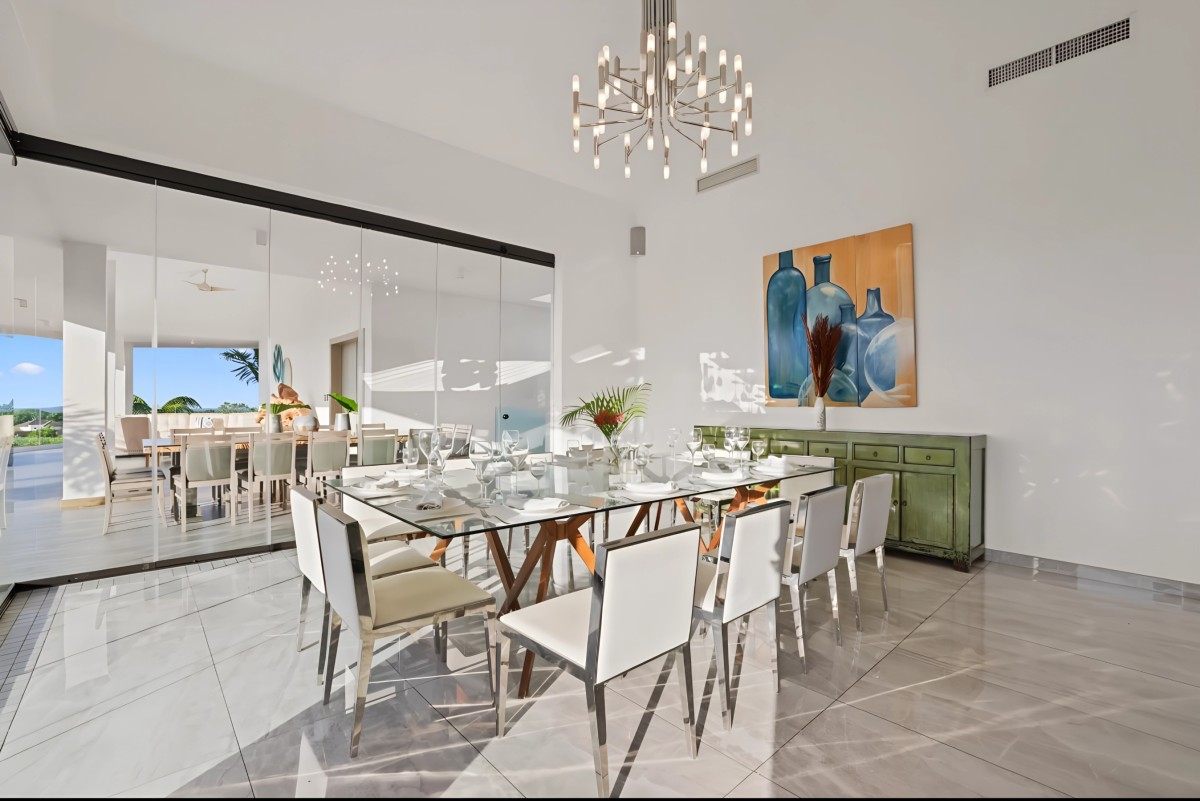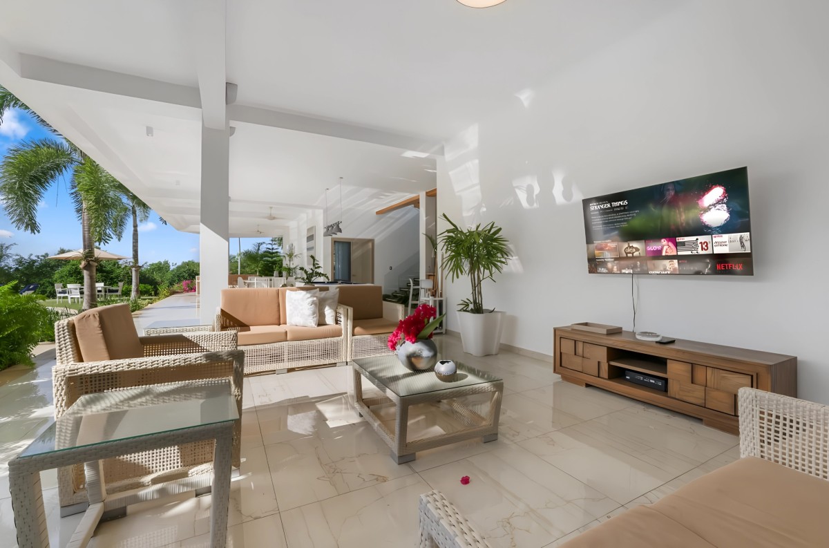 The villa’s outdoor areas extend the living experience beyond walls. Multiple terraces and lounging spaces offer ideal vantage points for sunrise views over the Caribbean or starlit evenings accompanied by the gentle sea breeze. The lush gardens and manicured landscapes provide both beauty and privacy, allowing guests to unwind in a serene environment.